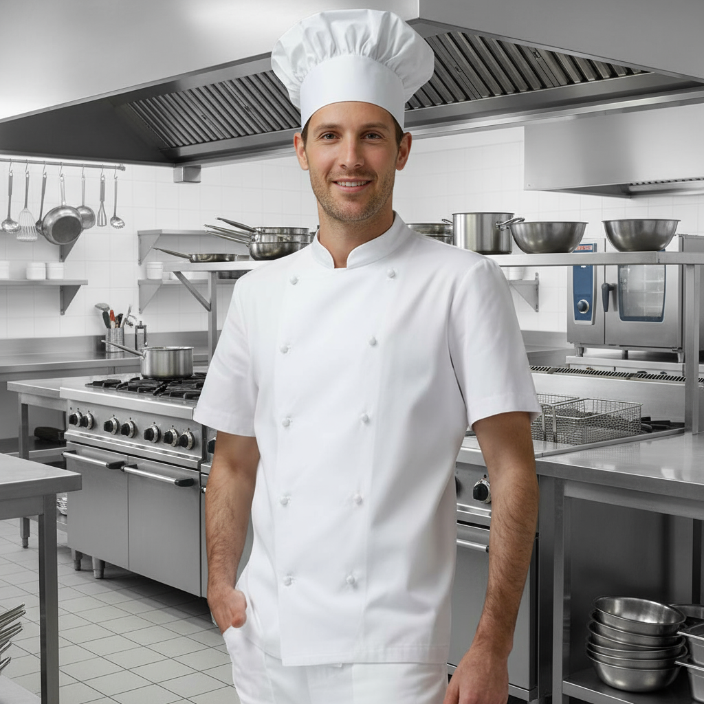 Giacca da cucina classica 100% cotone MADE IN ITALY.NON SGUALCISCE NON SI STROPICCIA, MANTIENE LA PIEGA E TENDE A RIACQUISIRLA ANCHE DOPO I LAVAGGI, PERMETTENDO DI EVITARE LA STIRATURA, TALE TESSUTO RISULTA INATTACCABILE DA MUFFE E BATTERI È IDROREPELLENTE E NON ASSORBE MACCHIE E UMIDITÀ PUÒ ESSERE RESO UN BUON TRASPIRANTE PER LASCIARE PASSARE IL VAPORE ACQUEO, INOLTRE ASCIUGA VELOCEMENTE.