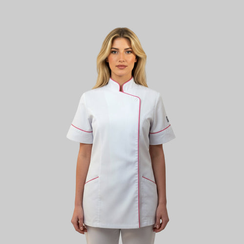 Camice,Casacca da Lavoro Donna, Slim Fit,per Estetista,parrucchiera, cuoca "bianco" COD: 15224