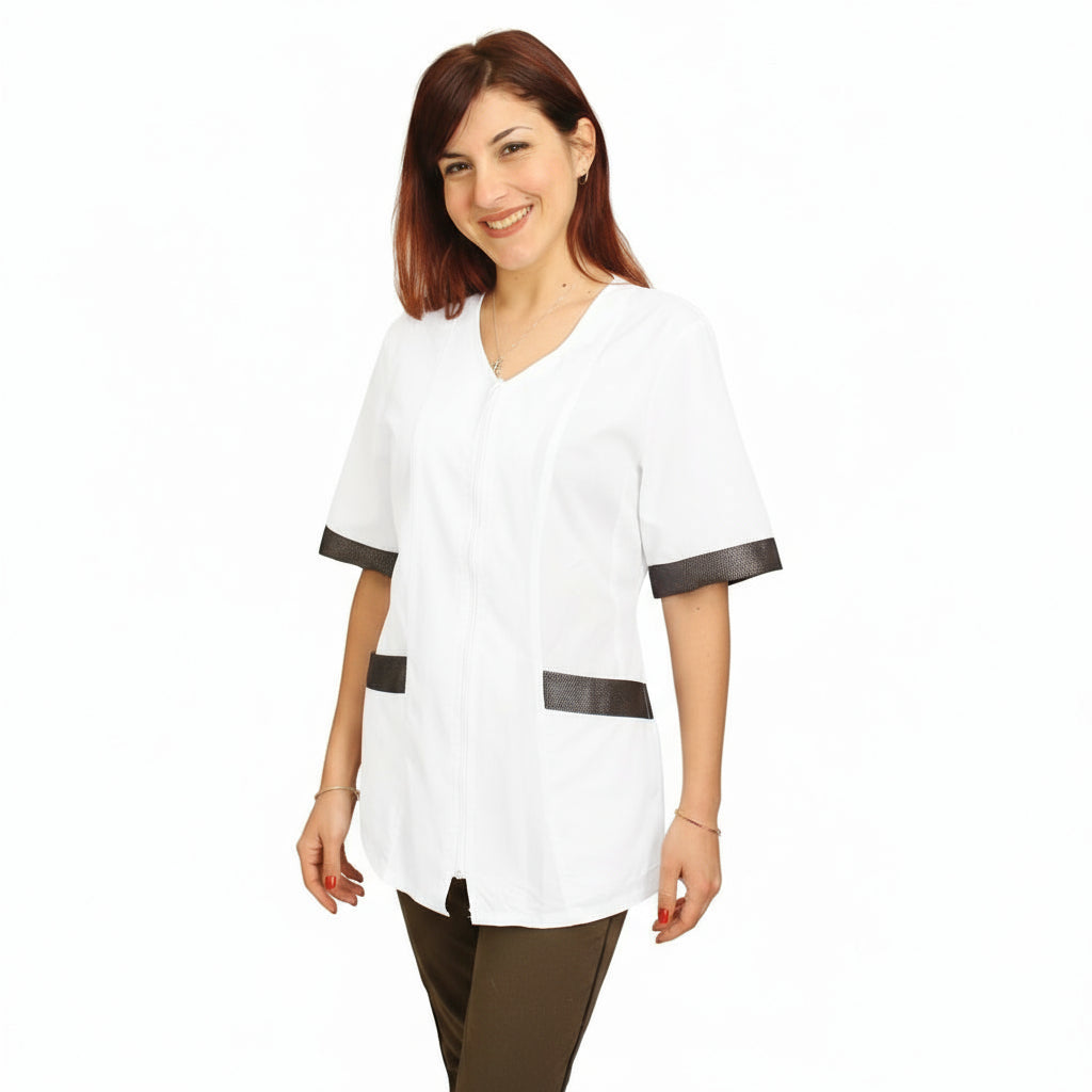 Questa elegante casacca da lavoro da donna con zip è ideale per chi lavora in ambienti come saloni di bellezza, parrucchieri, asili o nell'industria alimentare. Realizzata in un tessuto leggero e traspirante, offre comfort e libertà di movimento durante le lunghe giornate lavorative. La chiusura con zip frontale facilita l'indossarla e la toglierla rapidamente. Disponibile in quattro colori diversi, questa casacca professionale è facile da abbinare con il tuo abbigliamento lavorativo preferito. Mantieniti fresca e alla moda mentre svolgi le tue mansioni quotidiane con questo capo versatile e funzionale. Lavabile in lavatrice per una facile manutenzione.Questa elegante casacca da lavoro da donna con zip è ideale per chi lavora in ambienti come saloni di bellezza, parrucchieri, asili o nell'industria alimentare. Realizzata in un tessuto leggero e traspirante, offre comfort e libertà di movimento durante le lunghe giornate lavorative. La chiusura con zip frontale facilita l'indossarla e la toglierla rapidamente. Disponibile in quattro colori diversi, questa casacca professionale è facile da abbinare con il tuo abbigliamento lavorativo preferito. Mantieniti fresca e alla moda mentre svolgi le tue mansioni quotidiane con questo capo versatile e funzionale. Lavabile in lavatrice per una facile manutenzione.