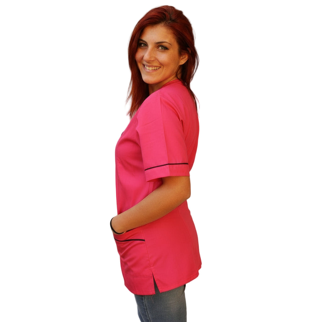 Questa elegante casacca da lavoro da donna con zip è ideale per chi lavora in ambienti come saloni di bellezza, parrucchieri, asili o nell'industria alimentare. Realizzata in un tessuto leggero e traspirante, offre comfort e libertà di movimento durante le lunghe giornate lavorative. La chiusura con zip frontale facilita l'indossarla e la toglierla rapidamente. Disponibile in quattro colori diversi, questa casacca professionale è facile da abbinare con il tuo abbigliamento lavorativo preferito. Mantieniti fresca e alla moda mentre svolgi le tue mansioni quotidiane con questo capo versatile e funzionale. Lavabile in lavatrice per una facile manutenzione.