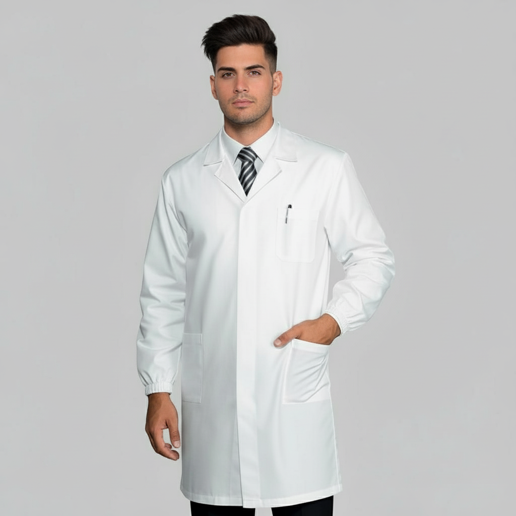 Camice usato in Laboratorio chimica, Scuole, Università, nel Settore Medico Sanitario, Alimentare, Alberghiero e Professionale. Scelto anche dalle professioni: Chirurgo, Estetista, Farmacista, Fisioterapista, Fruttivendolo, Gelataio, Infermiere, Lavapiatti, Macellaio, Massaggiatore, Odontotecnico, Ortofrutta, OSS. Ostetrica, Panetterie, Panificio, Parrucchiere, Pasticceria, Pescheria, Pescivendolo, Salumeria, Veterinario. Ottime rifinitura e molto resistente, 100% Cotone pesante - Chiusura con Bottoni Automatici - 3 Tasche, due ampie tasche e un taschino sul petto. - Polsi con Elastico - Made in Italy, non sgualcisce e non si stropiccia. Mantiene la piega e tende a riacquisirla anche dopo i lavaggi permettendo di evitare la stiratura. Tale tessuto risulta inattaccabile da muffe e batteri. E' idrorepellente e non assorbe macchie di umidità, può essere reso un buon traspirante per lasciar passare il vapore acqueo, inoltre asciuga velocemente.