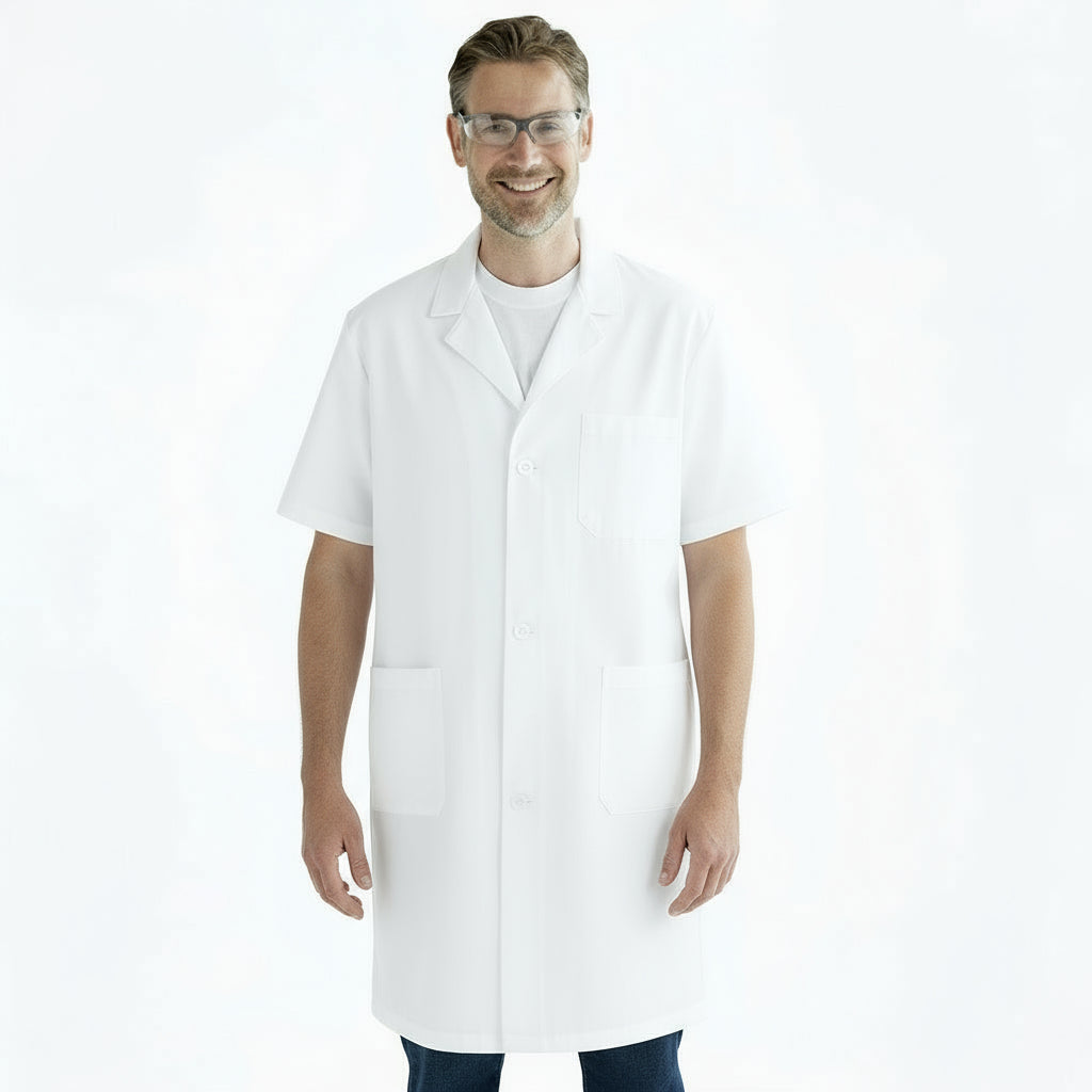 Camice da lavoro misto cotone NO-STIRO. Bianco ,leggero da uomo con 3 tasche e martingala. manica corta Made in italy, non sgualcisce e non si stropiccia. Mantiene la piega e tende a riacquisirla anche dopo i lavaggi permettendo di evitare la stiratura.Tale tessuto risulta inattaccabile da muffe e batteri. E' idrorepellente e non assorbe macchie di umidita',puo' essere reso un buon traspirante per lasciar passare il vapore acqueo, inoltre asciuga velocemente.