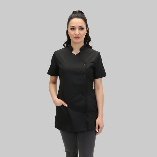 Camice da lavoro donna,casacca,divisa slim nero mezza manica "mod. Londinese" COD: 6909