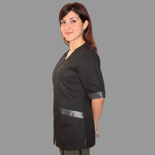 camice da lavoro donna,Casacca giromanica ZIP "Nero" Cod: 2006