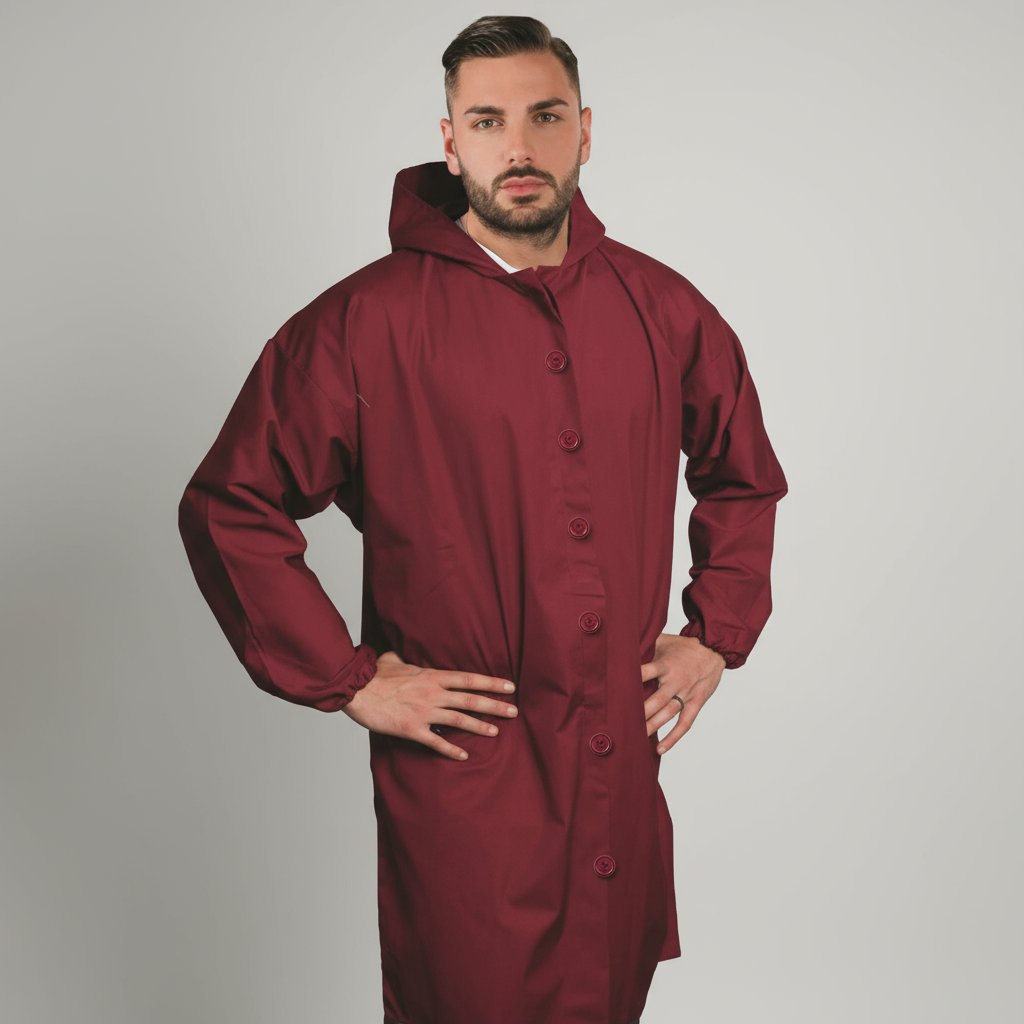 Camice con cappuccio, usato in genere in macellerie ,molto utile per entrare in cella frigorifera. Made in italy di tessuto molto robusto. Taglia unica