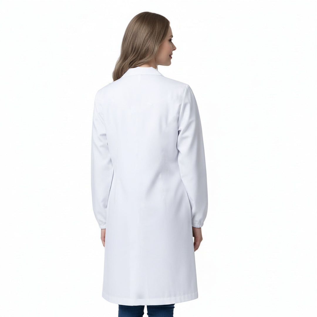 - DESIGN PROFESSIONALE: Camice lungo bianco con chiusura frontale a bottoni automatici nascosti per un aspetto pulito ed elegante